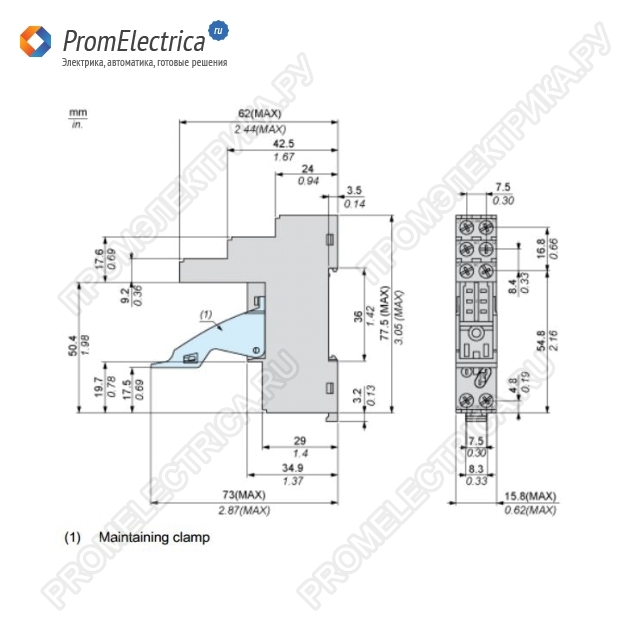 RGZE1S48M Колодка со скобой-держателем для реле Zelio RXG